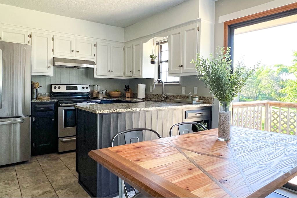 ✔ 2 Smart TVs ✔ Coffee, Keurig & tea provided ✔ Washer & Dryer on site ✔ Board games provided ✔ Outdoor seating ✔ Free parking ✔ Fast WIFI ✔ Pet friendly The open kitchen design brings in beautiful morning light for you to enjoy a nice coffee at the dining table or the deck. The kitchen is stocked with all the essentials, including pots, pans, cutlery, coffee pot, Keurig, and wine glasses. The kitchen offers a stove, microwave, sink, dishwasher & brand new refrigerator! Guests have access to the entire home, taking advantage of the spacious master bedroom with living area and en-suite bathroom. The double height living area is the perfect space to relax, read a book, or enjoy your favorite tv show. We strive to make my space as comfortable as possible. Each room includes a closet, Queen bed, nightstand, dresser & lamp. This home is an excellent choice for solo adventurers, couples, family gatherings & business travelers! Minutes away downtown Martin City, shopping center in Overland Park, and easy drive to bars and restaurants in Waldo!