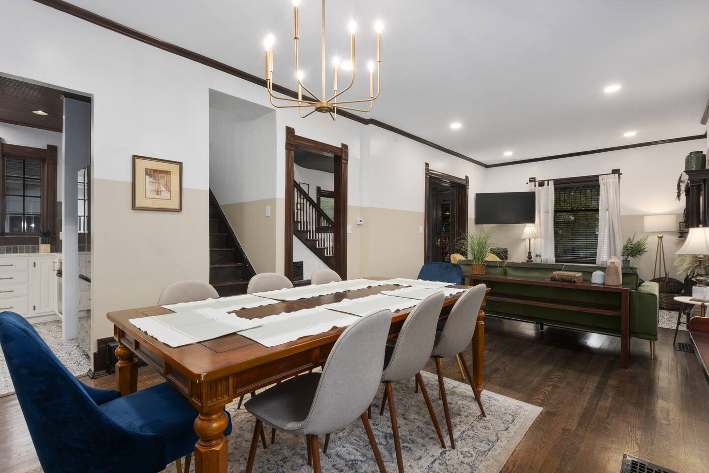 Welcome to our charming 4-bedroom retreat in the heart of Kansas City! This beautifully restored historic home blends timeless character with modern comforts. Inside, you’ll find thoughtfully designed spaces perfect for gathering or unwinding. The fully equipped kitchen has everything you need, while the cozy lounge area invites you to relax. Just minutes from KC’s best local restaurants, shops, and cultural spots, this is the perfect home base for making unforgettable memories.