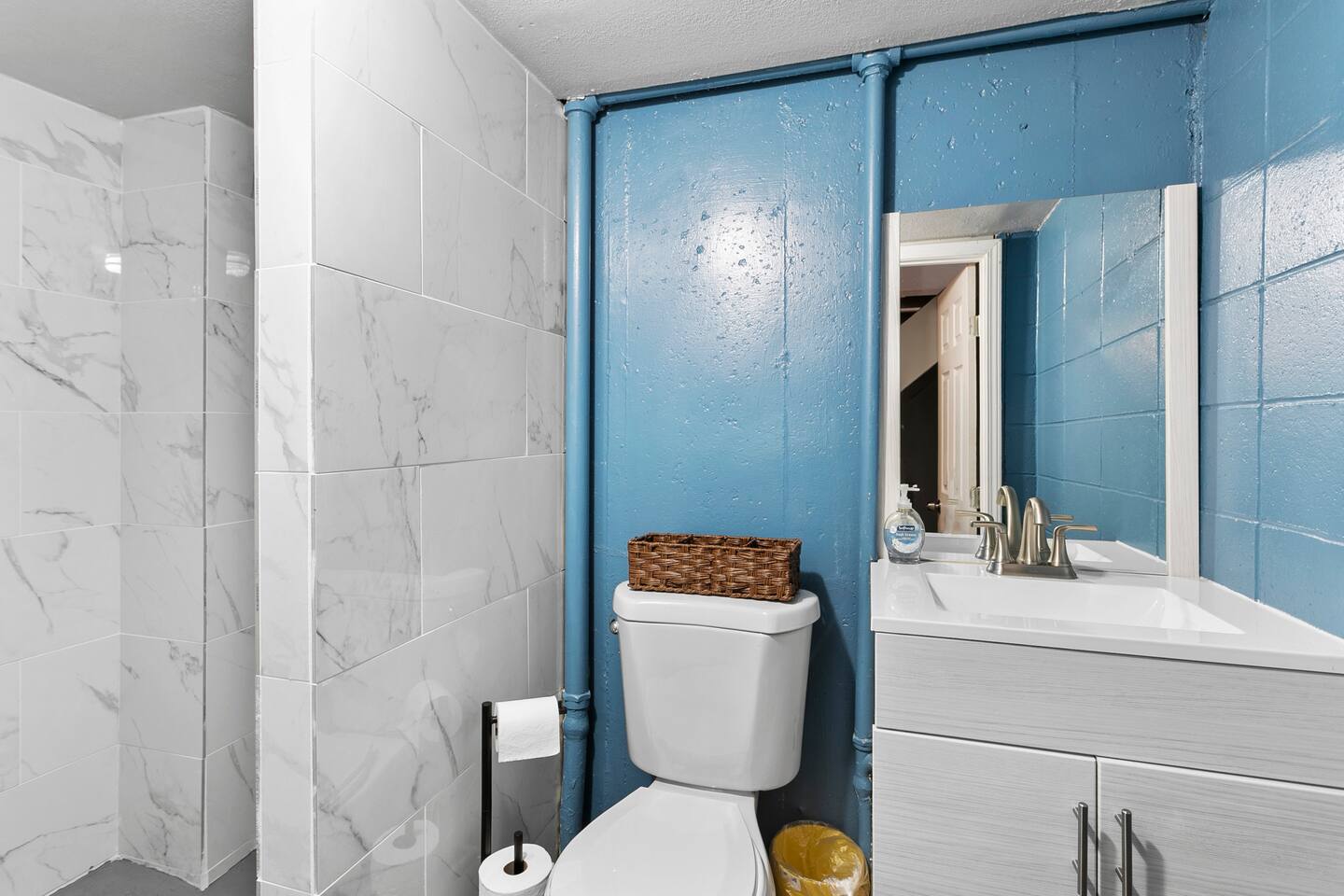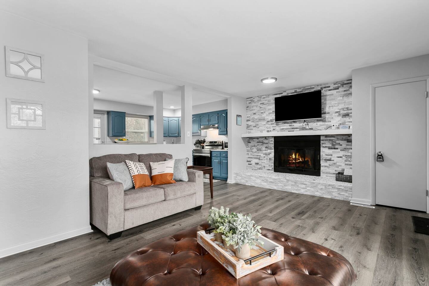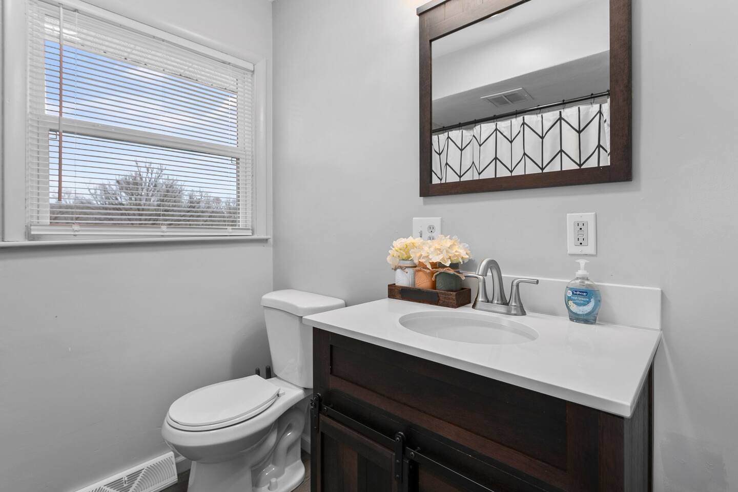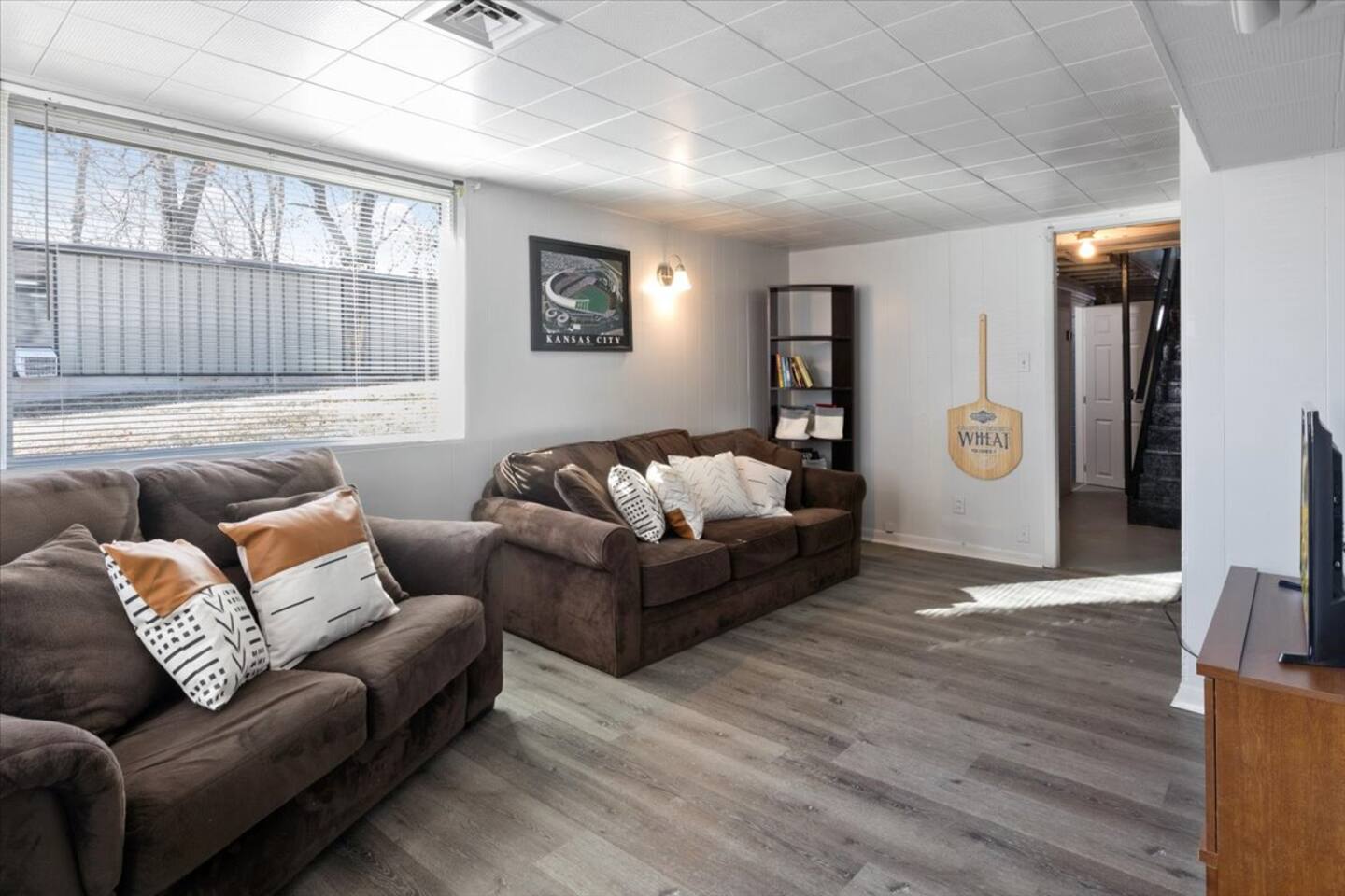 3 bedrooms and 1 full bathroom on the main level, an additional living room with TV & full bathroom with laundry on the lower level.