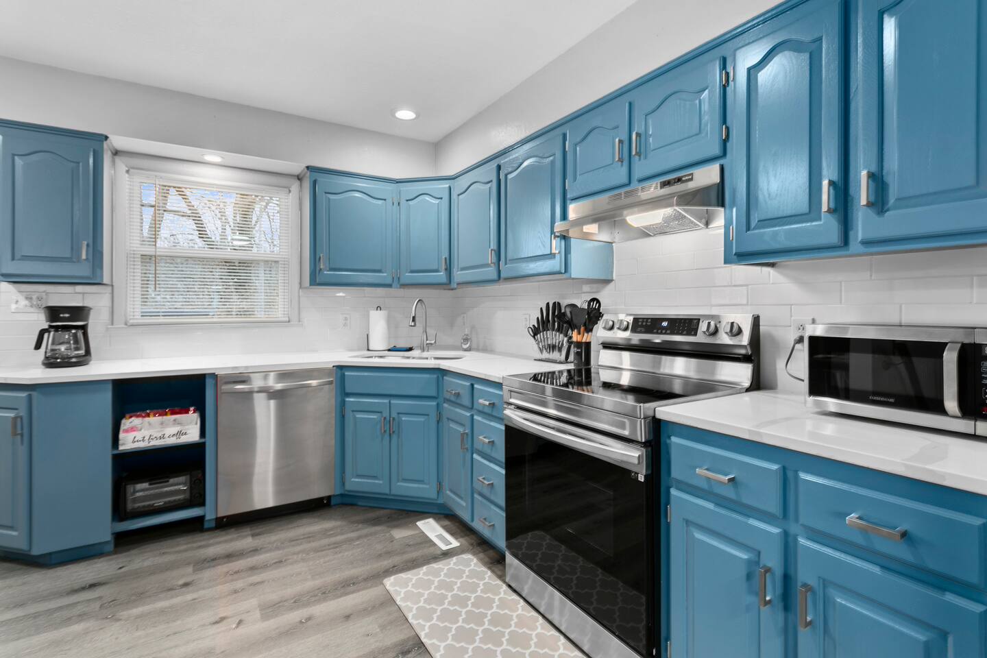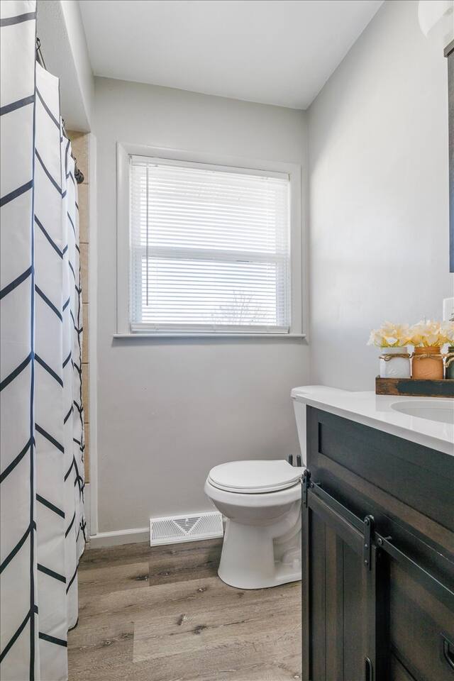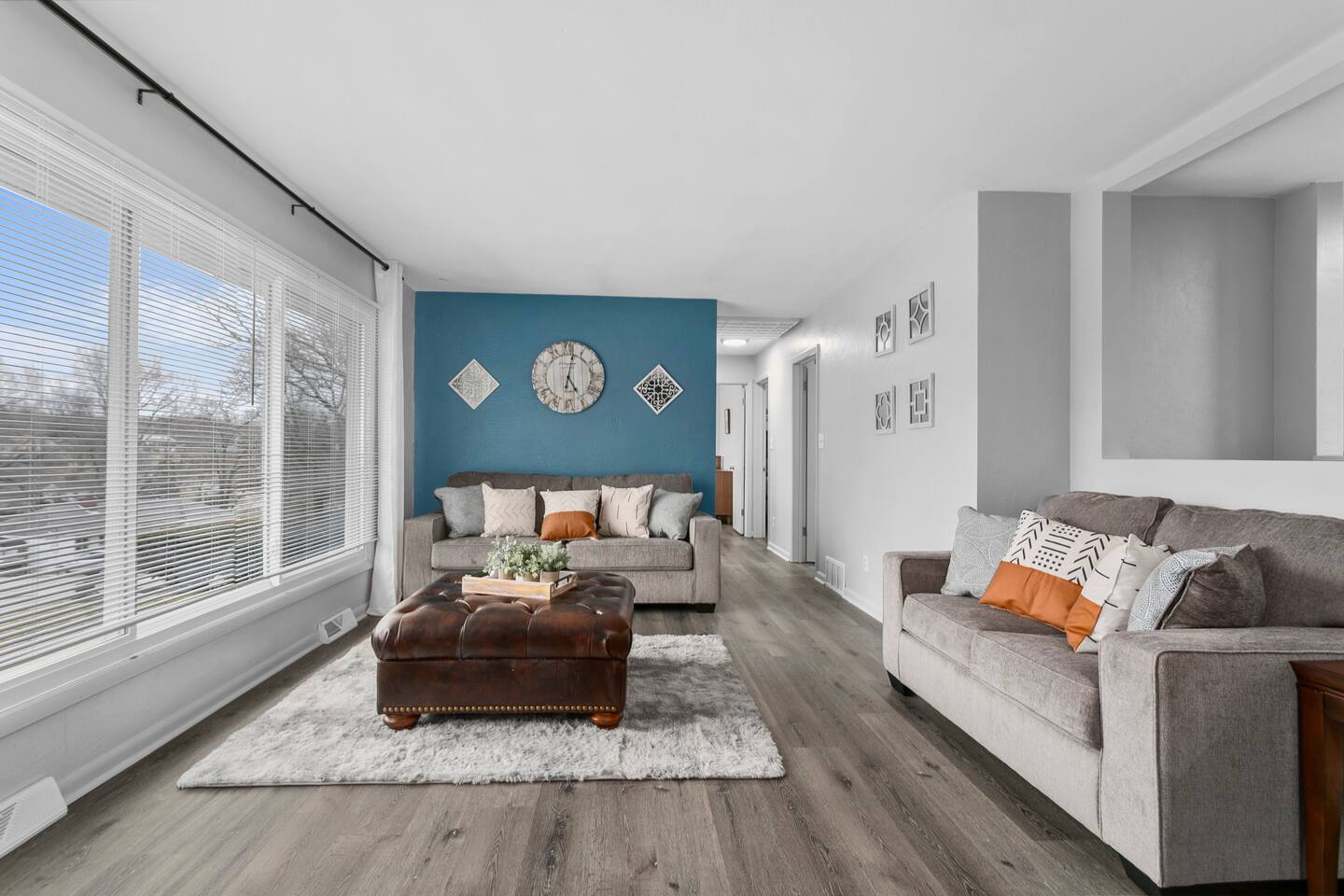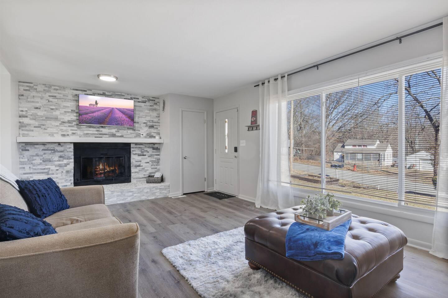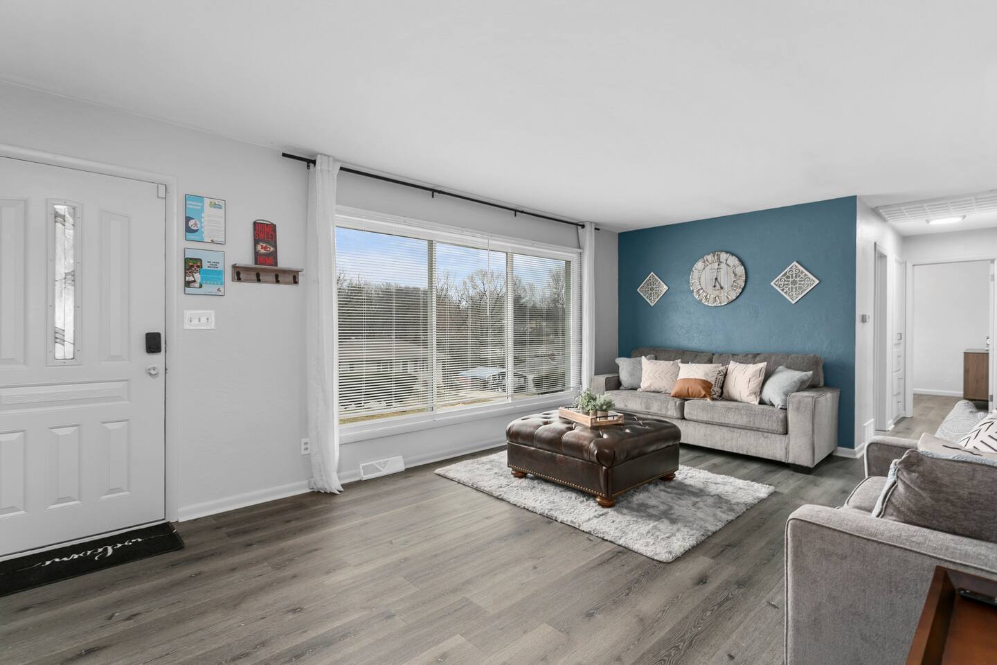3 bedrooms and 1 full bathroom on the main level, an additional living room with TV & full bathroom with laundry on the lower level.