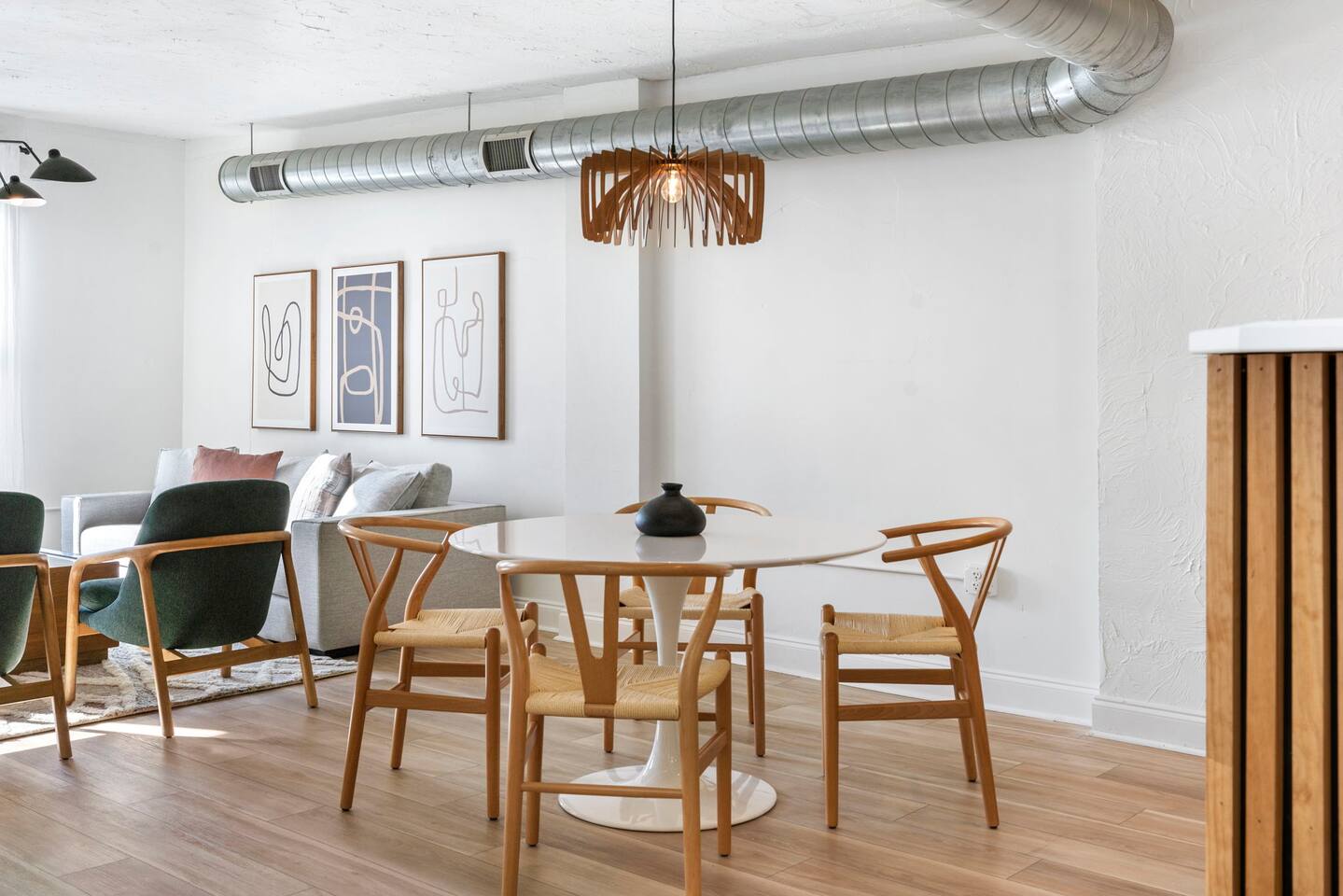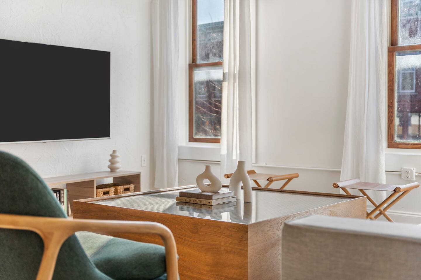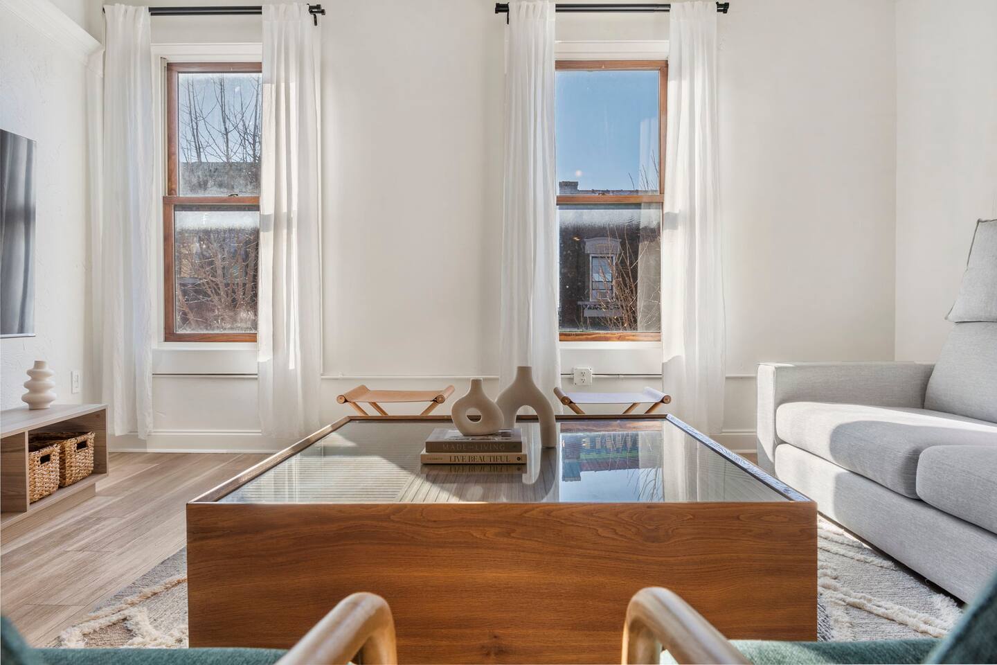 Welcome to your modern loft oasis in the heart of historic downtown Springfield! This recently renovated 1-bedroom, 1-bath apartment blends old-world charm with contemporary living. Inside, you'll love the open-concept design, tall ceilings, and huge windows that flood the space with natural light, making it feel bright and airy. The spacious living area features a large smart TV for easy streaming of your favorite shows and a comfortable layout that's perfect for both relaxing and working. High-speed internet makes remote work or video calls a breeze. The fully equipped kitchen comes stocked with essential cookware, dishes, and utensils — whether you're preparing a simple meal or settling in for a longer stay, you’ll have everything you need. Located right on Commercial Street, you’ll be steps away from some of Springfield’s best local cafes, restaurants, boutique shops, and art galleries. The building offers a charming historic vibe while being perfectly situated for urban convenience. Free street parking is typically available nearby. This loft is ideal for traveling nurses, remote workers, or anyone seeking a unique and comfortable extended stay in Springfield.