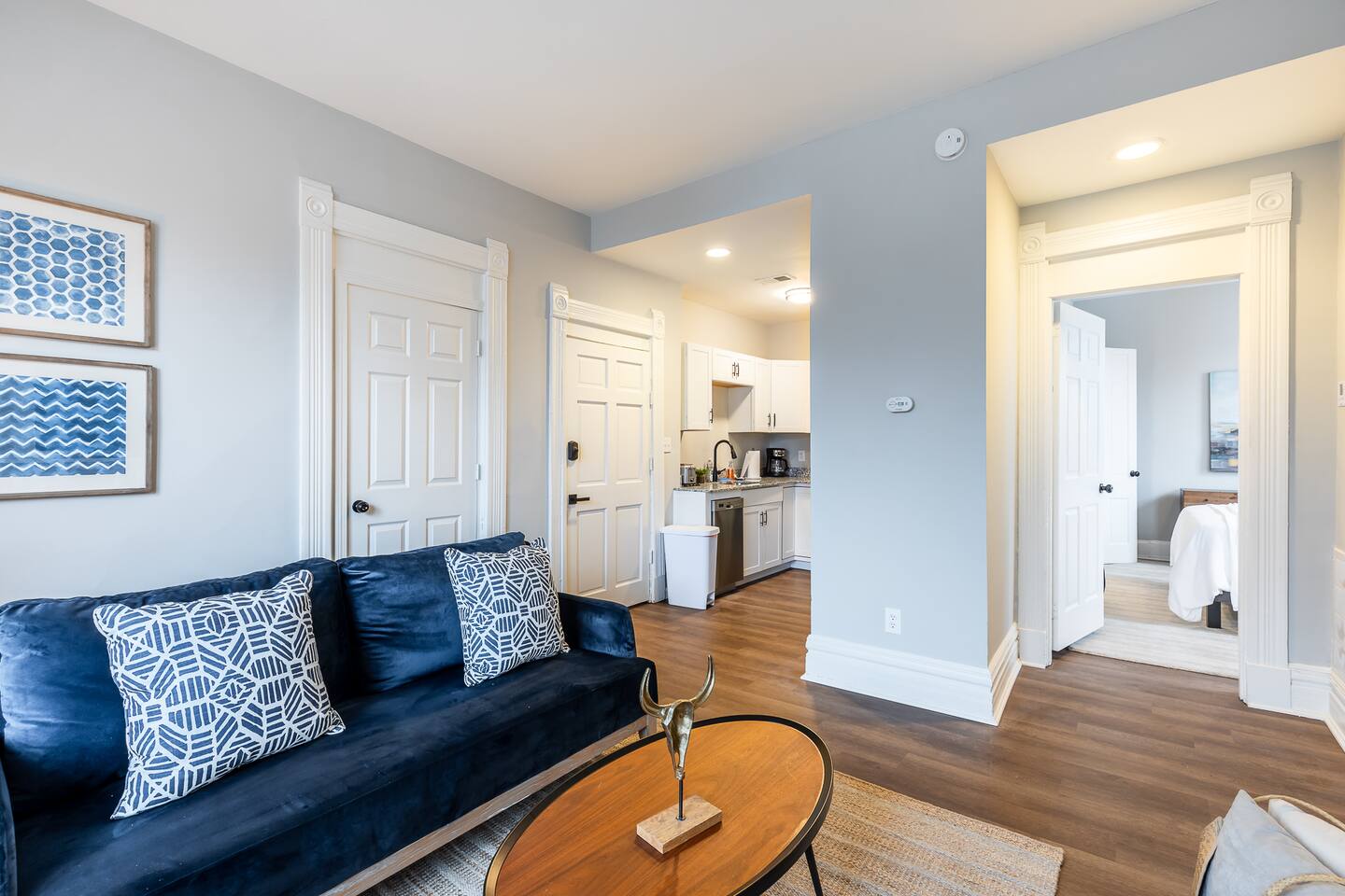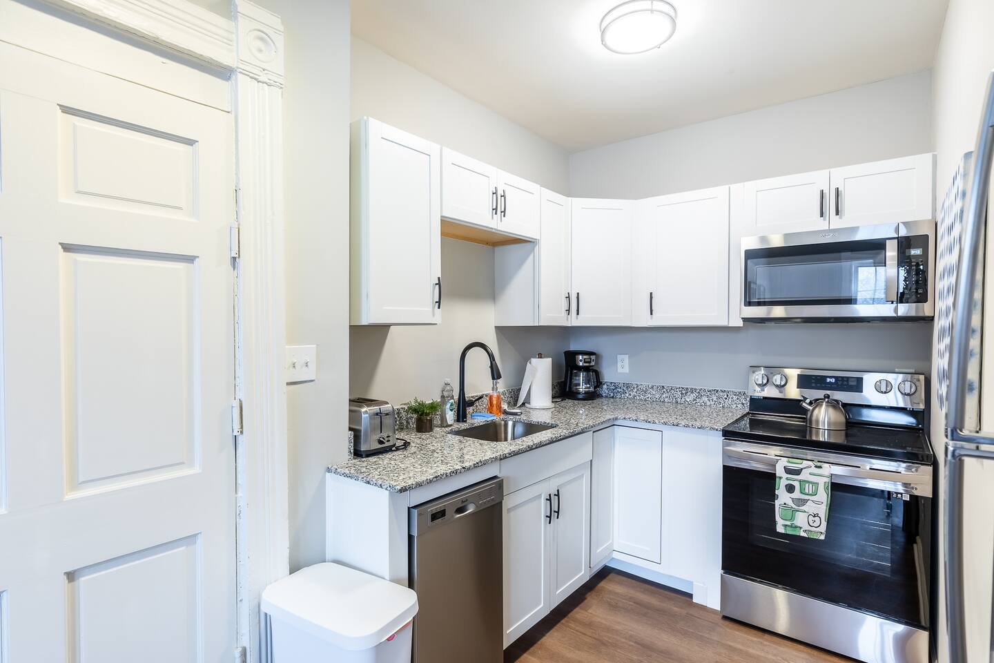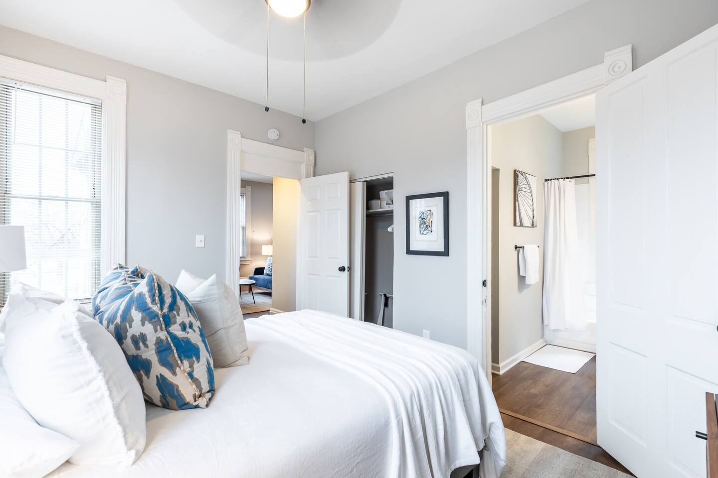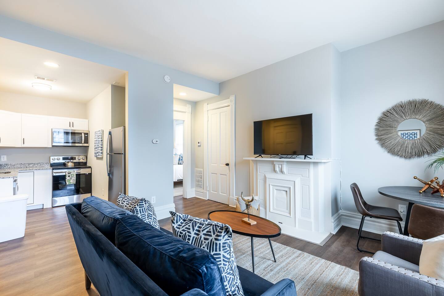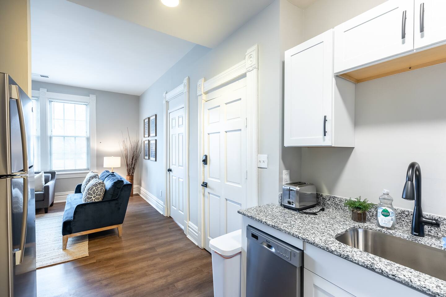 Welcome to your sophisticated Cincinnati retreat! This freshly renovated 1-bedroom, 1-bathroom apartment has been meticulously designed with healthcare professionals in mind, offering the perfect blend of comfort and functionality for extended assignments. The serene bedroom features a quality queen mattress and linens and room-darkening curtains—essential for medical professionals working varying shifts. The spacious closet provides ample storage for extended stays, with additional dresser space for personal belongings. Work efficiently at the dedicated workspace equipped with high-speed fiber internet and good lighting. The updated bathroom features a shower/tub combination with good water pressure and storage for personal items. The kitchen showcases contemporary stainless steel appliances and is fully equipped with essential cookware and meal prep tools—ideal for maintaining healthy eating habits during your assignment. The open concept living area offers comfortable seating and a smart TV with streaming capabilities for relaxation after demanding shifts. Practical amenities tailored for medical professionals include: Free washer and dryer Digital keyless entry system Professional cleaning prior to arrival Pet-friendly accommodations Welcome package with essentials for your first days Located just minutes from Cincinnati's premier medical facilities including Xavier University Medical Center, UC Health, and The Christ Hospital, this apartment provides the perfect sanctuary for healthcare professionals seeking quality accommodations during their Cincinnati assignment.