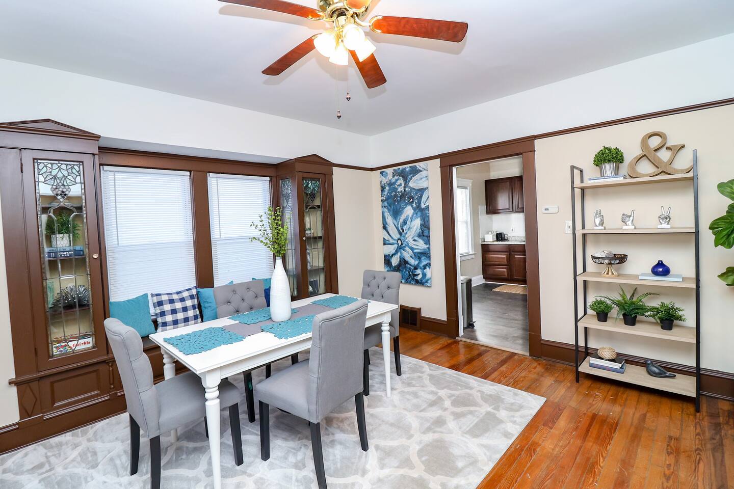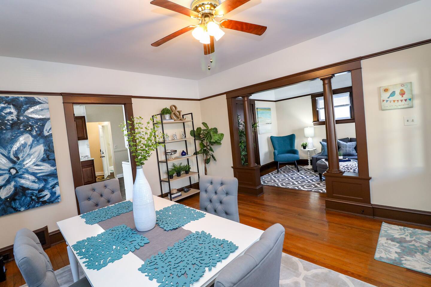Welcome to your bright and cozy retreat in the heart of Lakewood! This beautifully renovated 1-bedroom, 1-bath apartment offers a perfect blend of comfort, style, and convenience. Enjoy loads of natural light pouring through the large front windows into the open-concept living space, tastefully furnished with a pull-out sofa to accommodate additional guests. The modern kitchen features stainless steel appliances and all the essentials you need for everyday living. Relax in the inviting queen bedroom with soft linens and ample storage, and enjoy the added convenience of an in-unit washer and dryer. Whether you're sipping coffee on the cozy front porch or winding down after work, this home is thoughtfully designed to make your extended stay feel effortless. Quiet and peaceful, yet just minutes from Lakewood’s lively restaurant scene, beautiful parks, shopping, and downtown Cleveland. Ideal for traveling professionals, especially healthcare workers, with top hospitals like Cleveland Clinic - Lakewood, MetroHealth, and Fairview Hospital all less than 15 minutes away. Free street parking makes commuting simple, and the welcoming neighborhood feel adds to the charm of your stay. Hospitals Nearby: Cleveland Clinic - Lakewood – 1.4 miles (~5 min drive) Fairview Hospital – 4.0 miles (~8 min drive) University Hospitals Cleveland Medical Center – 4.7 miles (~12 min drive) MetroHealth Medical Center – 3.1 miles (~9 min drive) St. Vincent Charity Medical Center – 3.4 miles (~10 min drive)